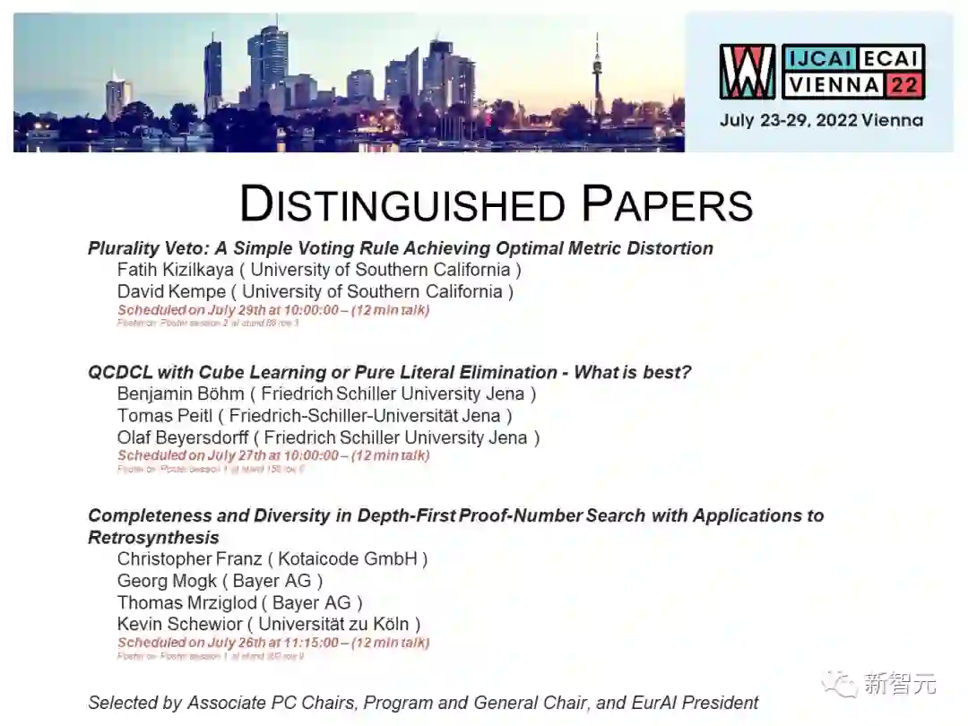 继六月公布其年度四大奖项之后,人工智能领域顶会IJCAI-ECAI刚刚揭晓了2022年杰出论文奖获得者名单 (IJCAI-ECAI 2022 Distinguished Papers Award winners)。