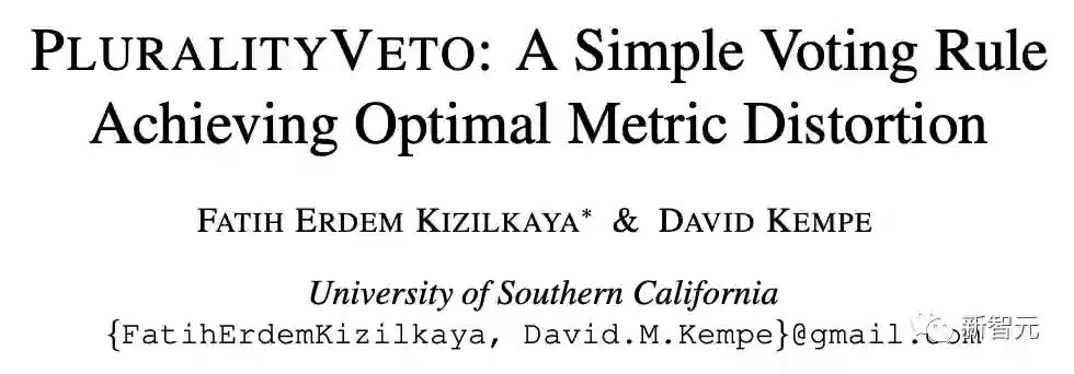我们的主要结果是一个非常简单的投票规则,被称为PLURALITY VETO,它实现了最佳失真3。