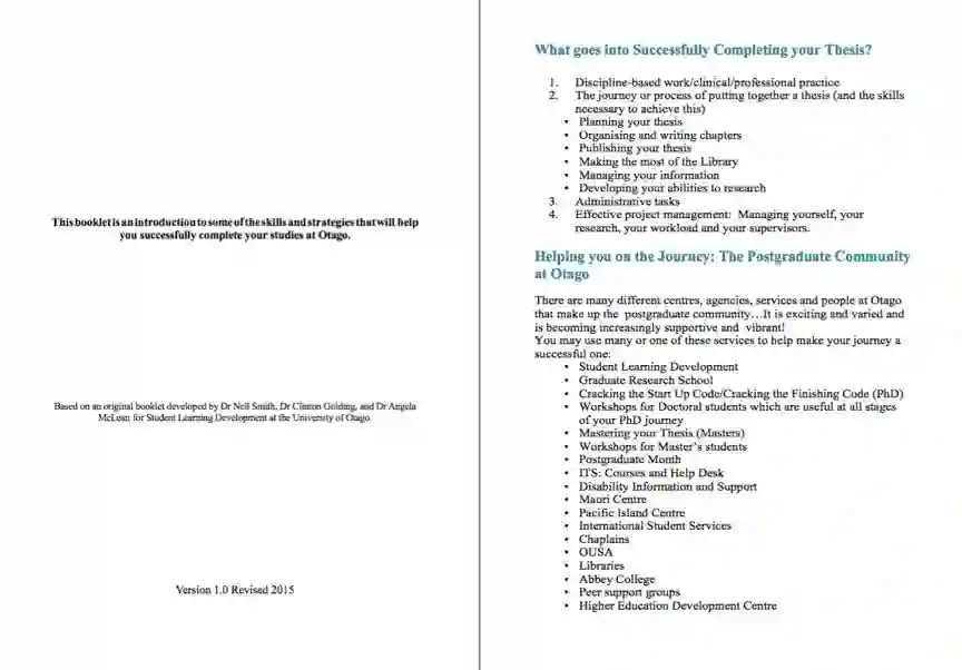 如何才能成功完成你的论文?我如何告诉别人我正在学习的东西?如何论证论文?如何组织你的论文表述?来自奥塔哥大学的一份学术指南详尽地罗列科研过程中可能遇到的问题和解决方案。