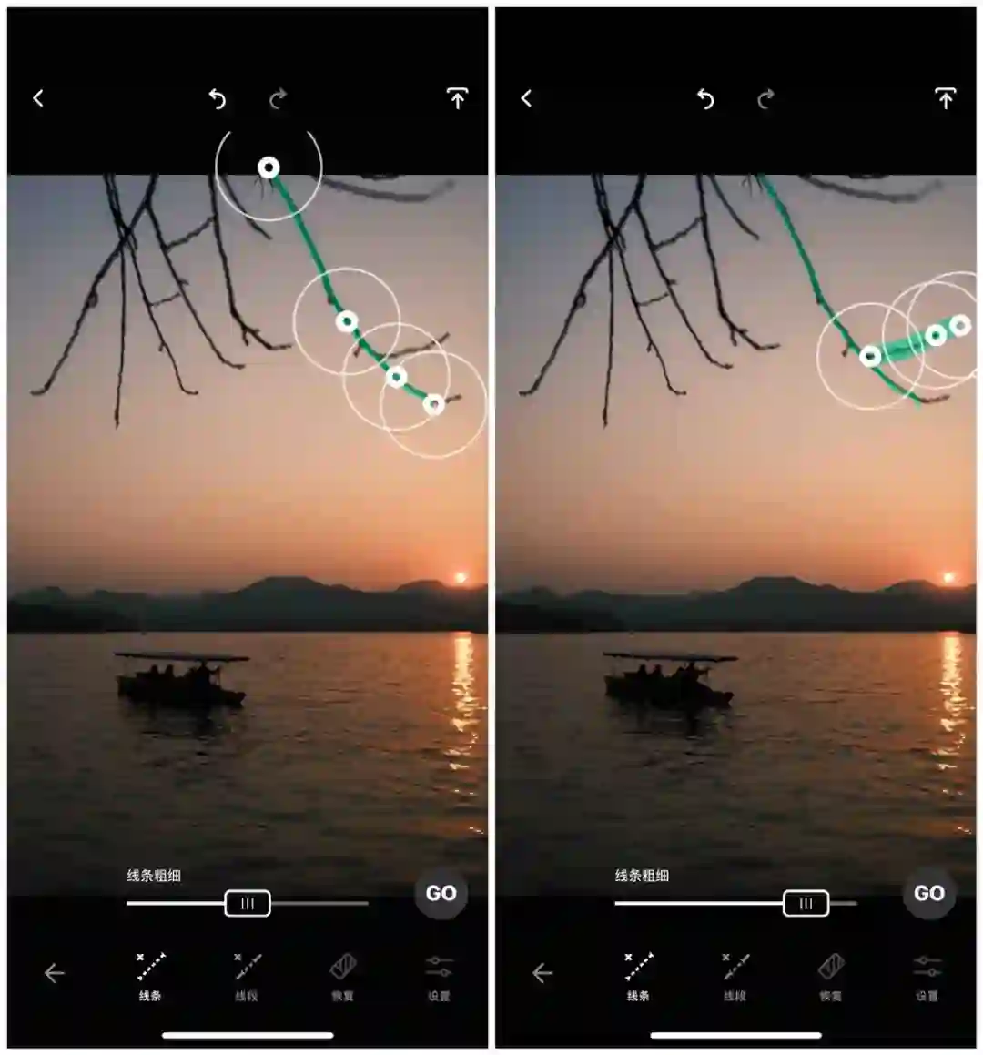 相较于旧版,新版在线条删除上更加灵活。以往,只能调节线条的粗细。现在,在手动模式下绘制线条后,能看到整条路径上所有锚点,拖动锚点位置改变线条路径,这可比用画笔手工绘制精细多了。