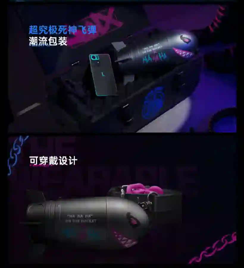 OPPO Reno7 Pro 英雄联盟手游限定版的包装盒以金克丝的”超究极死神飞弹“为原型,包装盒内附赠的充电器、充电线、卡针都使用了英雄联盟元素,而且还有变身好运魄罗的金克丝手机挂件和金克丝涂鸦定制手机壳。