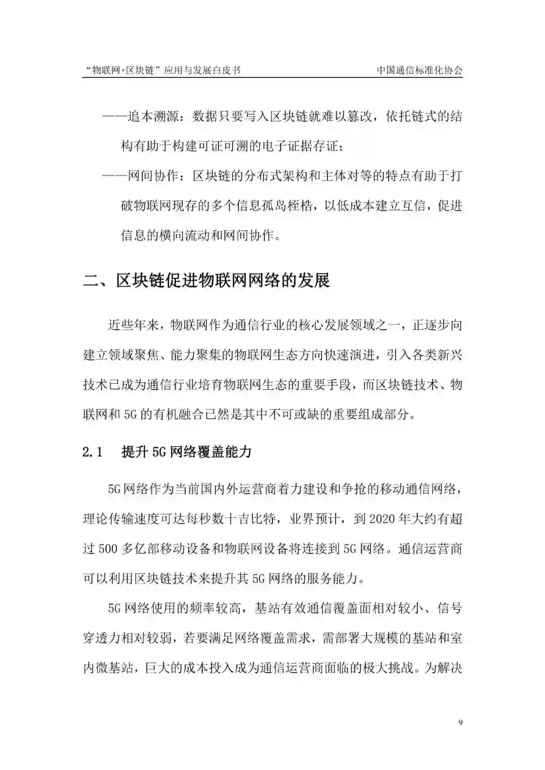• 网间协作:区块链的分布式架构和主体对等的特点有助于打 破物联网现存的多个信息孤岛桎梏,以低成本建立互信,促进 信息的横向流动和网间协作。