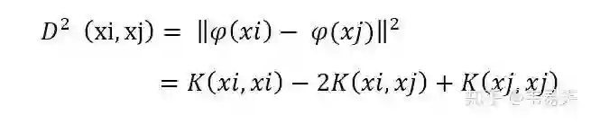 那么高维空间里两个点的距离,核化以后距离的平方可以表达为: