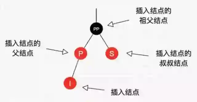 图8的字母并不代表结点Key的大小。I表示插入结点,P表示插入结点的父结点,S表示插入结点的叔叔结点,PP表示插入结点的祖父结点。