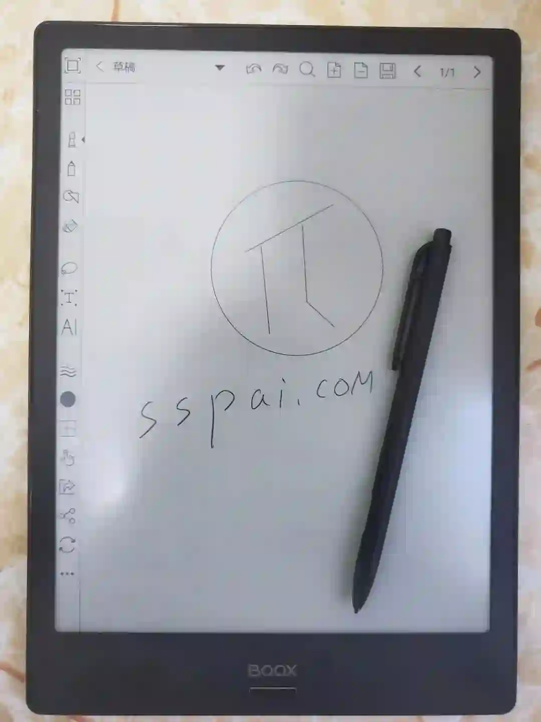 尽管电子墨水屏仅有黑白两色,但文石 BOOX Note 却配备了一支 Wacom 电磁笔,并支持 4096 级压感和五种笔迹色彩(虽然看不出来)。如果你是一名大触,可以试试用其内置的笔记应用勾勒骨架,之后再连接电脑上色,当作一块数位屏使用。