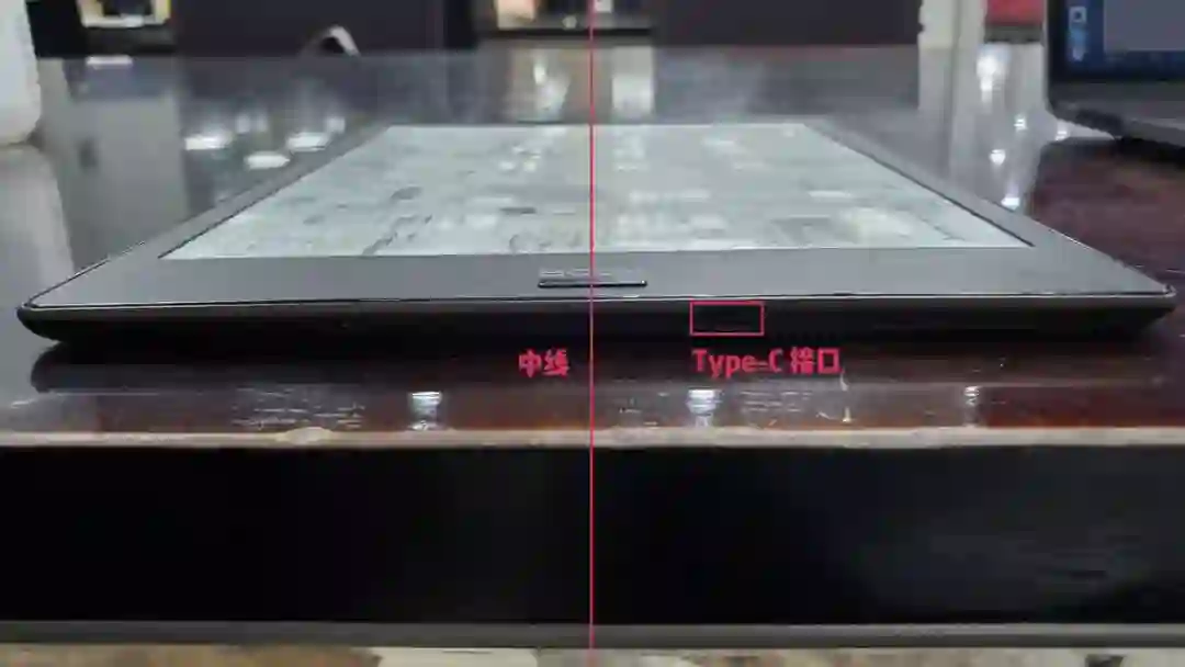 在外观方面,文石 BOOX Note 的屏幕并没有采用全贴合设计,也没有背光功能,关灯后就不要想着继续读书了。当然,以上两点可以用一分钱一分货安慰自己,但令本强迫症不满的是,底部 Type-C 接口居然不居中,怎么看怎么别扭,想自己动手把他掰过来。