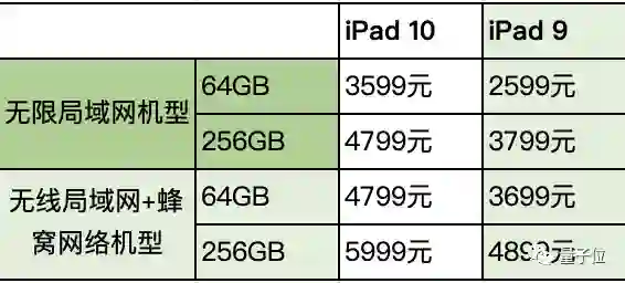 对比上一代iPad 9,同样容量下,无论是无线局域网机型还是无线局域网+蜂窝网络机型的起售价,都上涨了1000元。