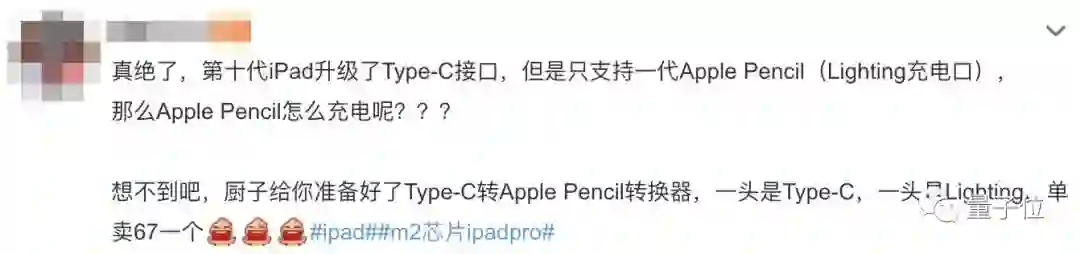 iPad取消Lightning接口,适配的Apple Pencil型号却还是Ligthning接口;倒是上架个转换器,却要价67元;