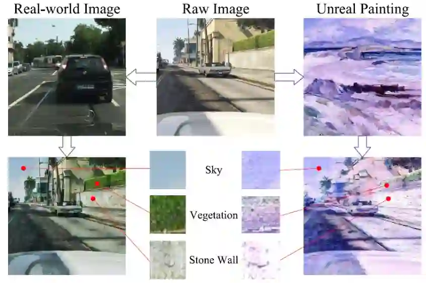 图 2 真实图像与虚幻绘画风格迁移的比较