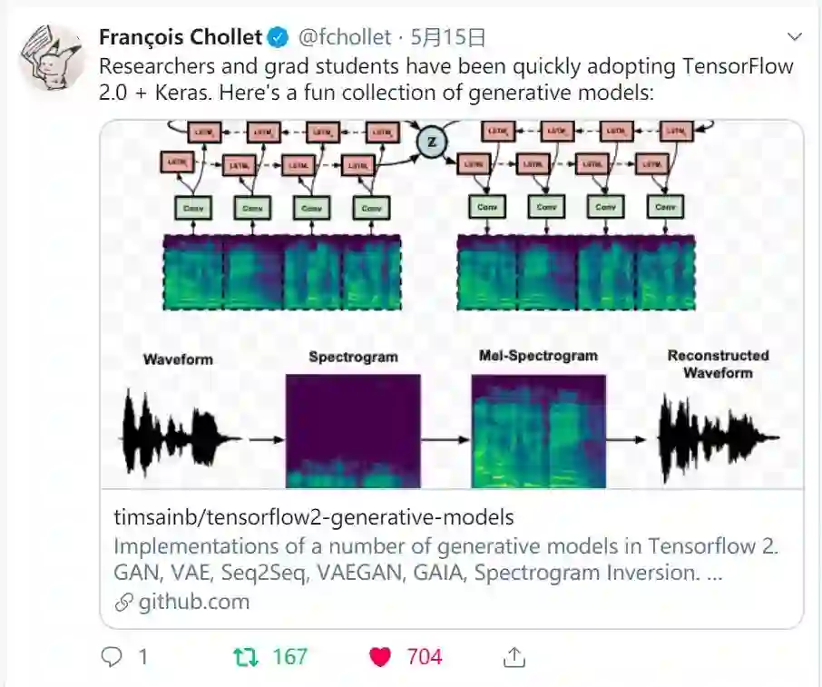 Keras作者François Chollet近期在Twitter上推荐了Github项目timsainb/tensorflow2-generative-models: