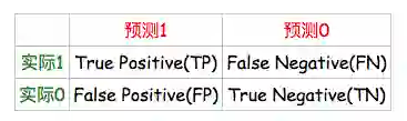 考虑一个二分问题,即将实例分成正类(positive)或负类(negative)。对一个二分问题来说,会出现四种情况。如果一个实例是正类并且也被 预测成正类,即为真正类(True positive),如果实例是负类被预测成正类,称之为假正类(False positive)。相应地,如果实例是负类被预测成负类,称之为真负类(True negative),正类被预测成负类则为假负类(false negative)。