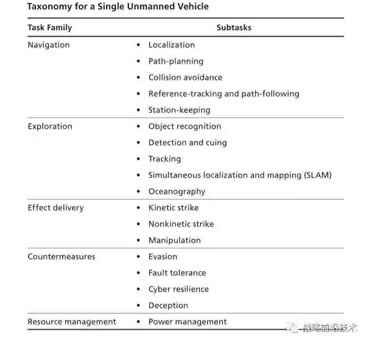 二是对于要求较高层次自主性的系统中,将自主性的发展与可能成为限制因素的其他能力的发展进行整合。例如,比起执行远程任务所需的自主性特征,远程大排水量无人水下航行器容易受到发电能力和储电能力的影响。