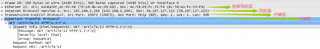 客户端与服务端进行交互的信息为报文。客户端为请求报文,服务端为响应报文。我们先用Wireshark抓一个博客看看。