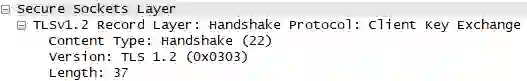 打完招呼完毕后,客户端对证书进行核实。然后根据密码套件也生成椭圆曲线的公钥,用"Client Key Exchange"消息发给服务器:
