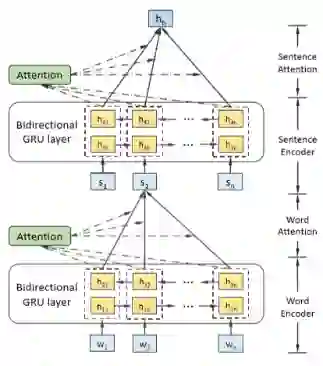 丨采用分层注意力网络建模在线文章的长文本内容,这出于对文档的固有层次结构(即单词形成句子和句子形成文档)的考虑,将文档依次编码为单词级和句子级的注意力向量,有益于得到更优的文本语义表示。