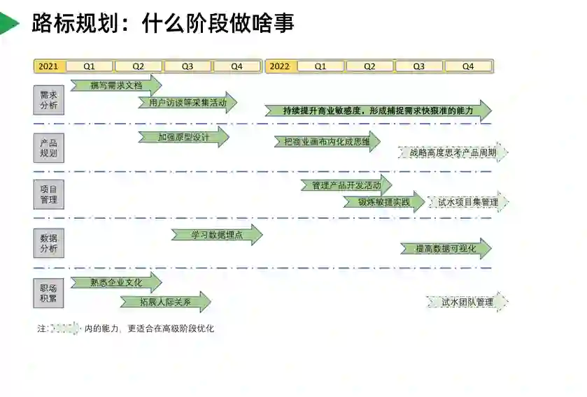 在思考这类问题时,你们是否有想到过:可以把招聘产品经理的公司看做用户,把自己看做一个待开发的产品,用产品思维做一份规划并落地执行呢?