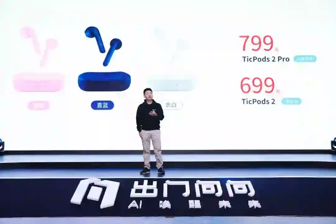 在介绍完公司及新品性能后,价格助推发布会高潮,李总在发布会结尾重磅公布了新品售价。TicPods 2 Pro(AI增强版)定价799元,TicPods 2(基础版)定价699元。即日起至11月1日将在京东、天猫、小米有品及出门问问官方商场开启预售,其中TicPods 2 Pro预售价699元,TicPods 2预售价599元。