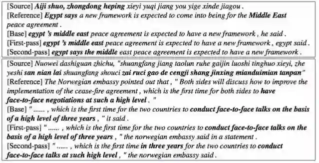 在这项研究中,我们提出了用于序列生成任务的推敲网络,其中会使用一个第一阶段解码器来生成一个原始序列,然后再使用一个第二阶段解码器来润色这个原始序列。实验表明我们的方法在机器翻译和文本摘要任务上可以实现比几种基准方法远远更优的结果,而且我们的方法还在WMT' 14 英语→法语翻译任务上实现了新的单个模型的当前最佳结果。