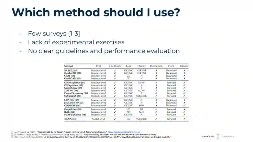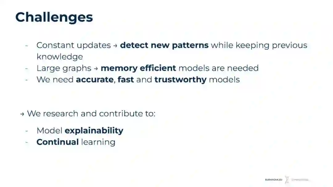随着时间的推移,从汽车、制药到电子商务和银行,大型网络数据已经在大多数行业中无处不在。尽管最近做出了一些努力,但以有效和可扩展的方式在不断变化的数据上使用时间图神经网络仍然是一项挑战。本次演讲展示了euroanova的研究轨迹之一。我们提供了直接适用于实际用例的相关持续学习方法的概述。由于可解释性已成为值得信赖的AI的核心要素,我们引入了最先进的方法,用于解释节点、链接或图级预测。