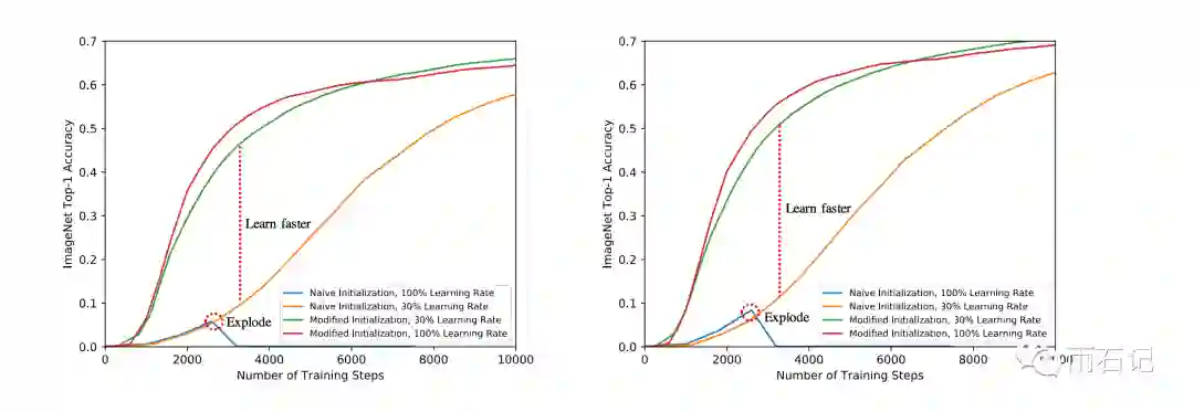 同样的,如果关注模型最后的结果,如下图,可见,使用新的初始化方法+原来的学习率,可以学的更快更好。