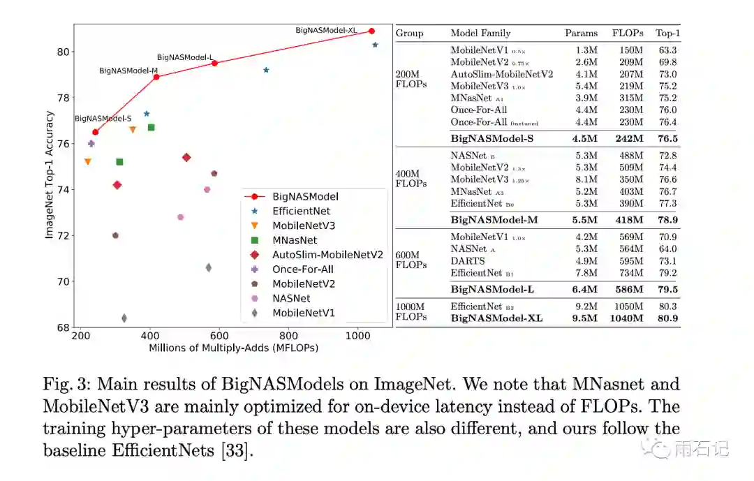 得到的结果如下,可以看到,在每个参数量级上,BigNAS都能得到最好的结果。
