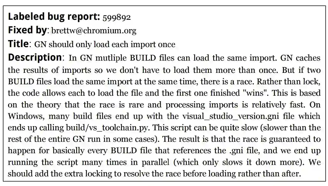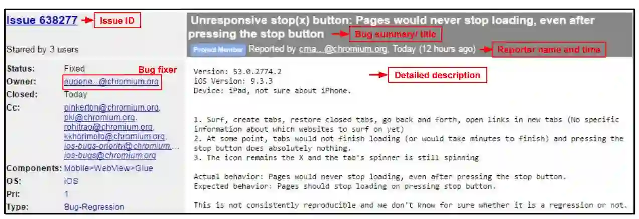 图 2:来自谷歌 Chromium bug 库中的 bug 报告,被用作标注模板以训练分类器。