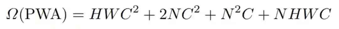 由于Window Token总结了本地窗口的全局信息,因此所提出的PWA有助于在窗口级而不是像素级上有效地执行窗口之间的信息交换。具体地说,PWA的复杂性如下: