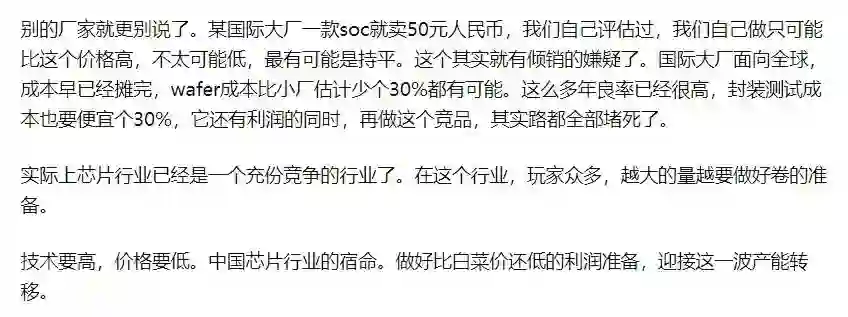 等制造厂定的;封装成本是日月光、长电等定的。正常一颗芯片的毛利在30%-100%左右,实际上目前芯片就是白菜价。