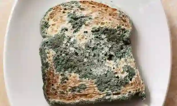 蓝色霉菌覆盖了一片面包。图片来源:RapidEye/Getty Images/iStockphoto