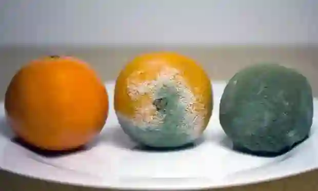 一只橘子腐烂的过程。图片来源:Getty