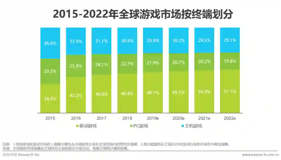 与前几年相比,全球整体移动游戏的市场规模占比在近三年中增幅明显。