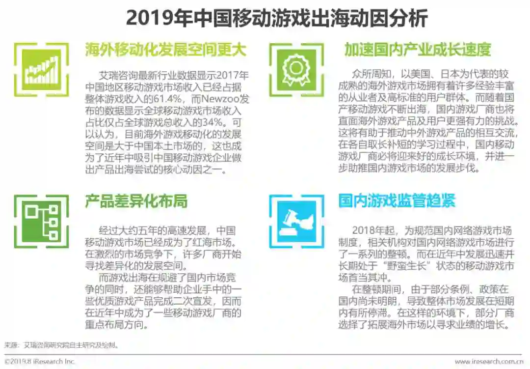 随着中国国内移动游戏用户红利的逐渐枯竭,游戏出海在未来几年仍将成为中国移动游戏研发商拓展增量市场的主战场。