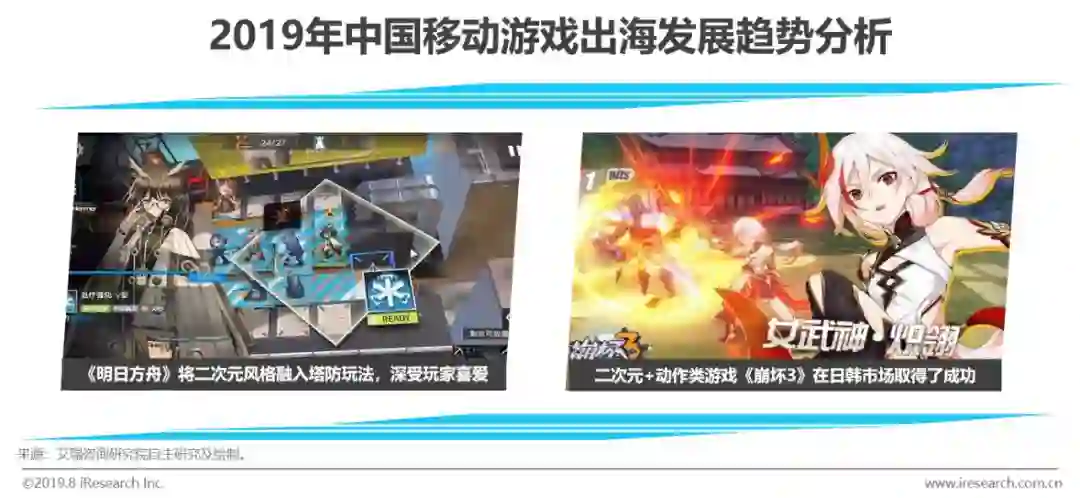 与此同时,考虑到在日本、韩国等东亚地区同样拥有着数量庞大的二次元群体,中国移动游戏研发商有望通过糅合二次元风格与热门游戏玩法的方式,来更顺利地将自研游戏推广入目标市场。