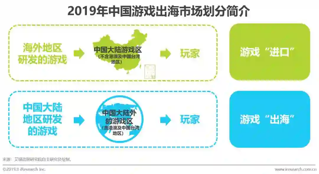 本次报告的市场划分规则主要以移动应用市场的大区划分为标准,因此将所有中国大陆应用大区以外的区域市场(包含港澳及中国台湾地区市场)划分为“海外游戏市场”。产品方面,由中国大陆地区研发的并在海外游戏市场成功发行的移动游戏,均定义为“出海移动游戏”。相对应的,在海外游戏市场研发并在中国大陆游戏区发行上线的移动游戏,被定义为“进口移动游戏”。