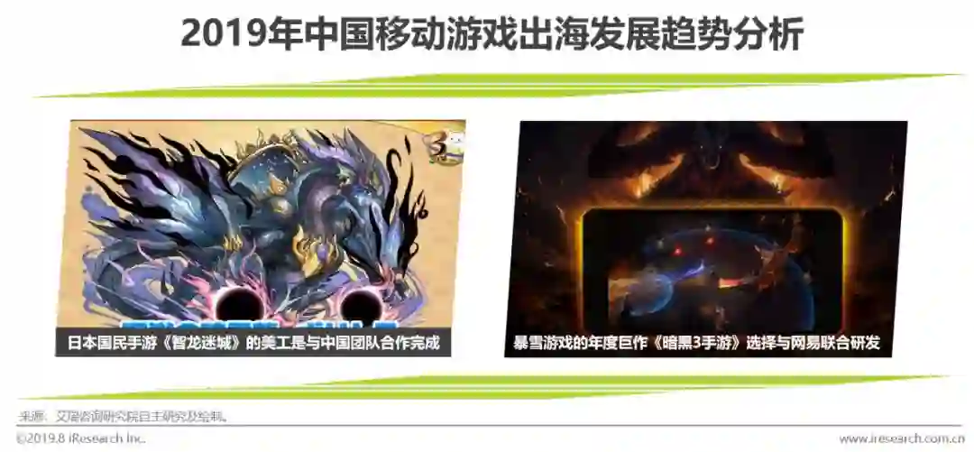 其实中国厂商凭借自己在美术内容开发上优秀的创意风格,早在数年前就开始吸引海外头部厂商主动寻求美术开发方面的合作。而随着近年中我国移动游戏研发实力的进一步发展,海外头部游戏公司已经不仅限于寻求与中国研发团队在美术开发方面的合作,如暴雪游戏正重点布局的《暗黑3手游》就选择了与网易的研发团队进行从内容策划到游戏机制设计的全方面联合研发。中国移动游戏研发商丰富的手游研发经验及全球领先的技术实力已然获得海外优秀游戏团队的认可。