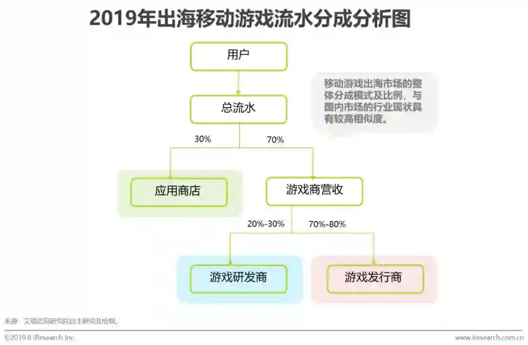 以APP Store及Google Play为代表的海外移动应用商店会在用户的游戏付费行为中进行第一轮流水分成,其分成比率一般为30%。