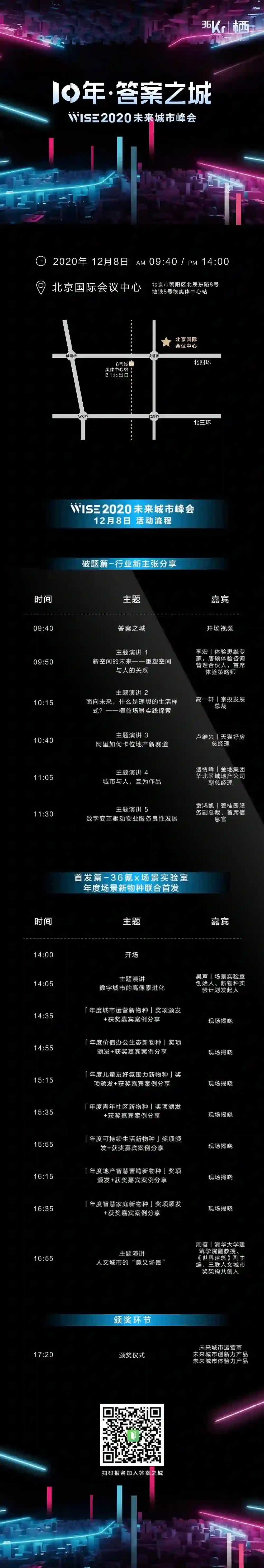 12月8日,WISE2020未来城市峰会,36氪联合场景实验室发起首届「年度场景新物种」评选,找寻传统地产的变革突破,与未来场景的探索创新。