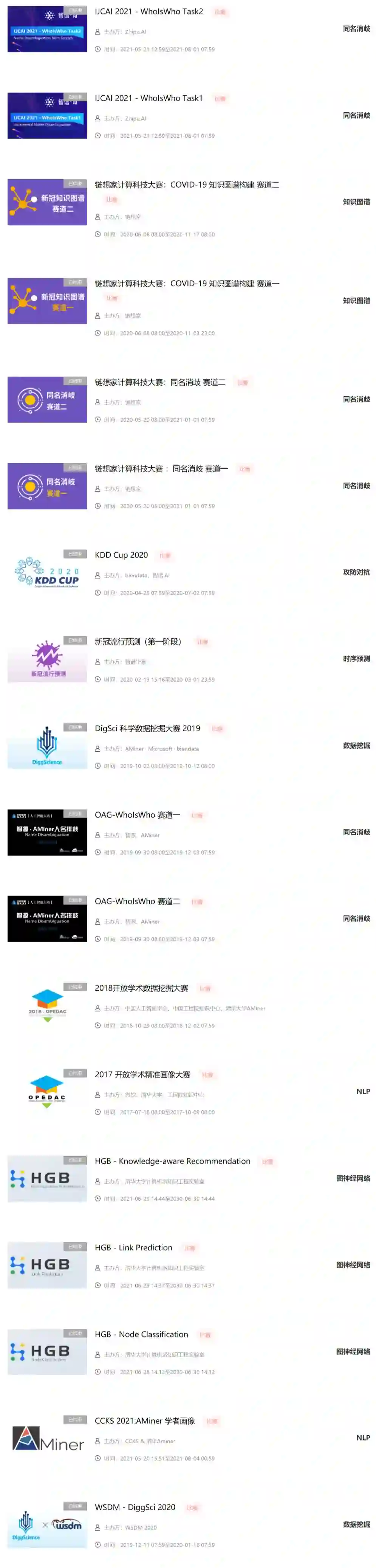 ▼智谱AI& AMiner 已举办的数据竞赛一览:
