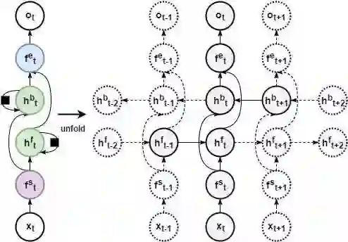 未来信息依赖:前馈网络是通过并接未来时刻的向量来引入未来信息对当前内容判断的限制,但常规的递归网络只对所有过去状态存在依赖关系。所以递归网络的一个扩展就是双向(bidirectional)递归网络:两个不同方向的递归层叠加。