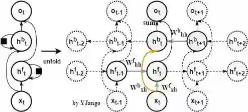 关系图:正向(forward)递归层是从最初时刻开始,而反向(backward)递归层是从最末时刻开始。