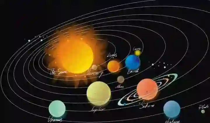 例1:轨迹的产生,如地球的轨迹有两条线索决定,其中一条是地球自转,另一条是地球围绕太阳的公转。下图是太阳和其他星球。自转相当于,而公转相当于