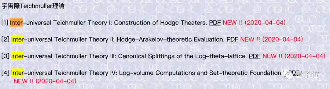 望月新一发表了4篇论文来证明这一猜想,他把自己的研究成果叫做“宇宙际Teichmuller理论”。