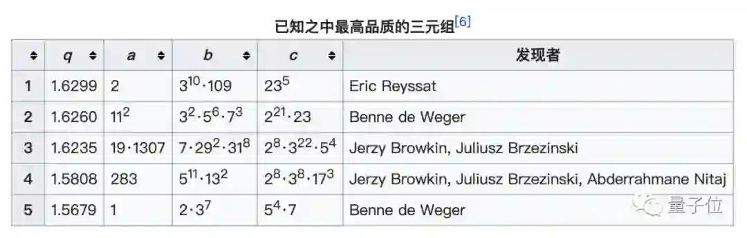 在人类短期内没法证明的abc猜想的情况下,科学家们想到了一个办法,就是用计算机暴力解决,从小到大依次寻找符合abc猜想第二种情形的组合。