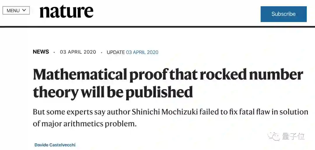 4月3日,日本京都大学召开了新闻发布会,宣布望月新一证明了它。包括Nature等在内的权威科学传媒组织,也这一重要进展进行了报道。