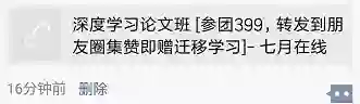 即日起至11月5日,打开【深度学习论文班】 链接http://www.julyedu.com/course/getDetail/94(点击文末“阅读原文”),分享到朋友圈(屏蔽分组无效)并集齐7个赞,即可找微信客服:julyedukefu01,免费领取【深度学习-迁移学习】课程!