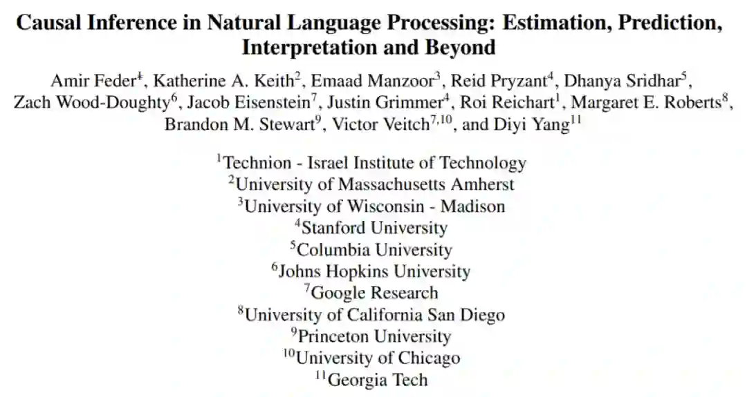 在这篇综述论文中,来自佐治亚理工学院的杨笛一等十几位研究者系统阐述了自然语言处理中的因果推理。