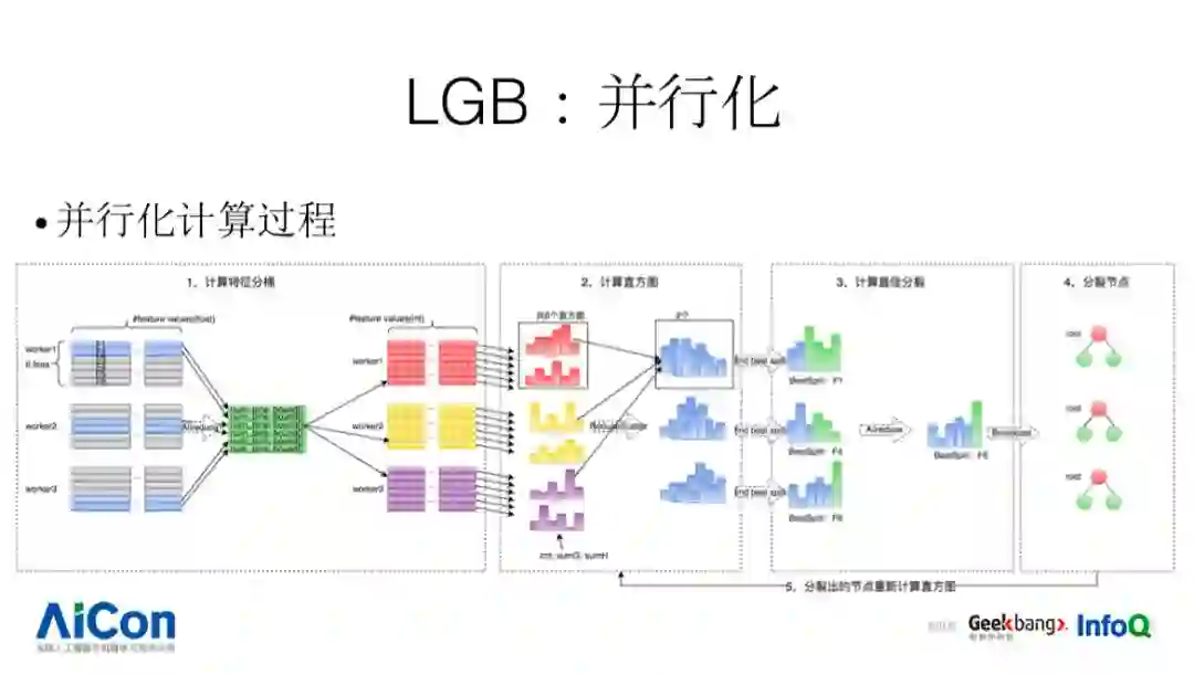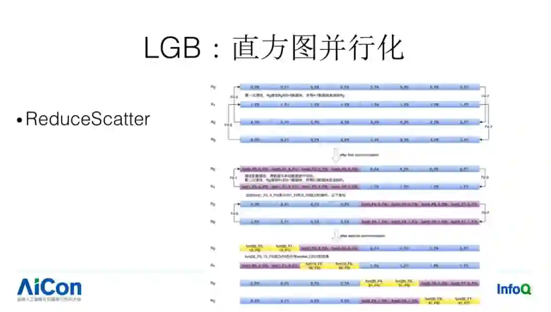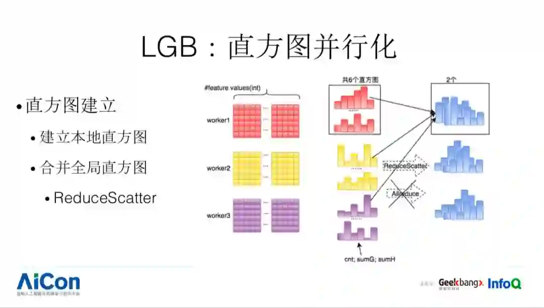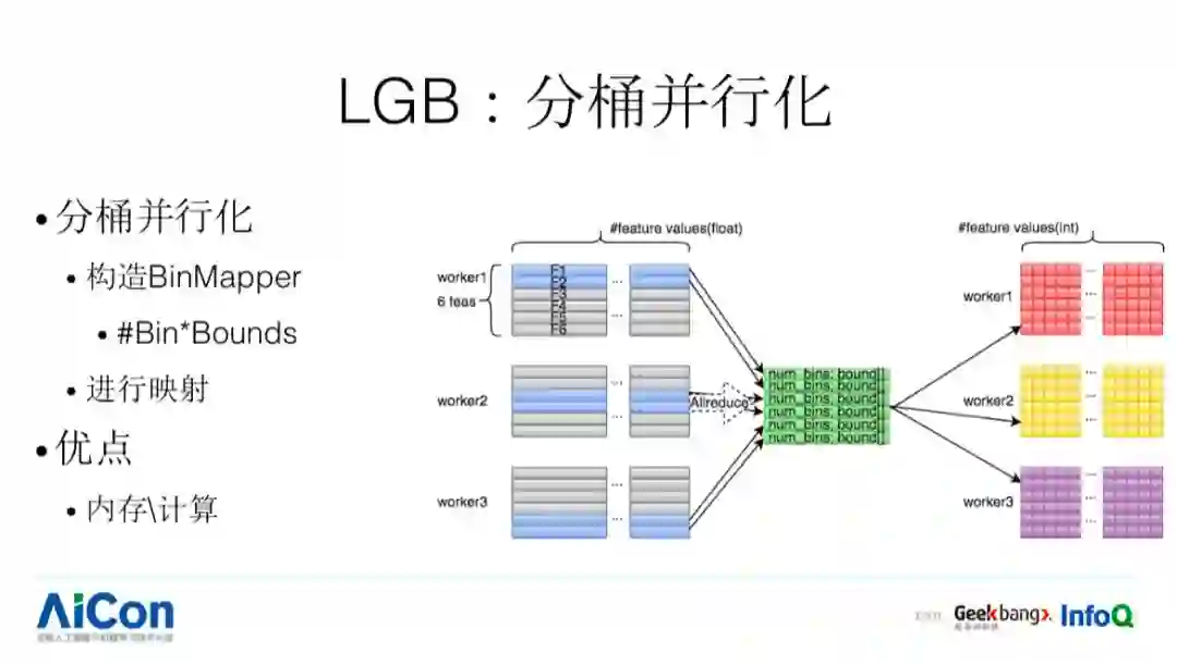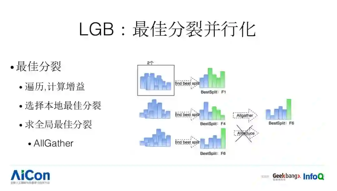 之后 xgboost 通过 allreduce 方式计算全局最优分裂,而 lgb 采用 allgather+ 本地 reduce 操作得到全局最优分裂