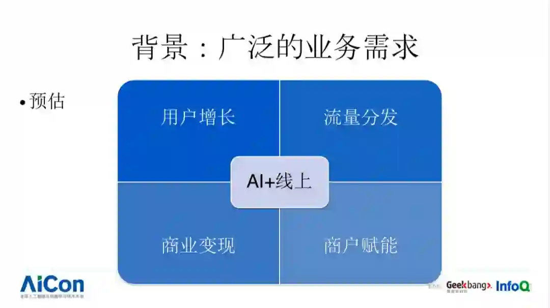 第四,商户赋能,最近比较火,比如说我们商家需要进行一些活动,广告主进行广告购买,我们就需要提前给它做针对性建议,平台掌握了大量的数据,可以通过算法方式进行优化。