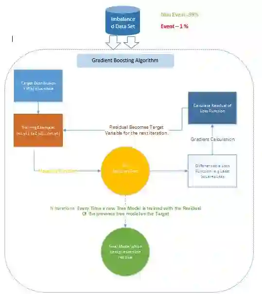 比如说,决策树拟合的是准确分类仅 5 次观察为欺诈观察的情况。然后基于该步骤的实际输出和预测输出之间的差,计算出一个可微的损失函数。该损失函数的这个残差是下一次迭代的目标变量 F1。