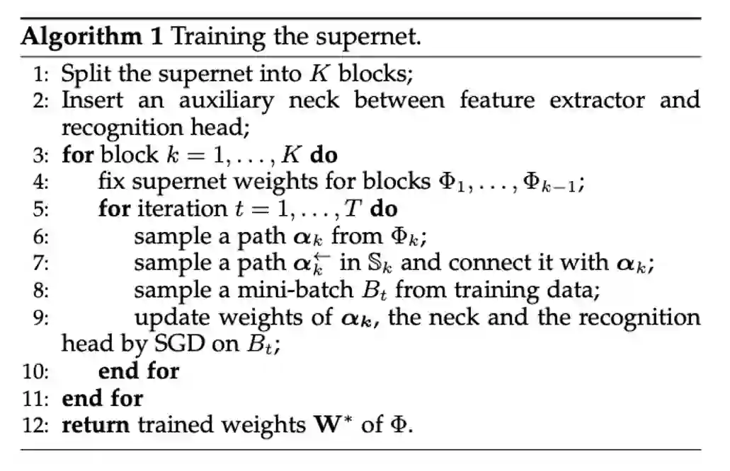 超网中的路径对应特征提取器的架构,设从 Algorithm 1 返回的超网的训练权重为